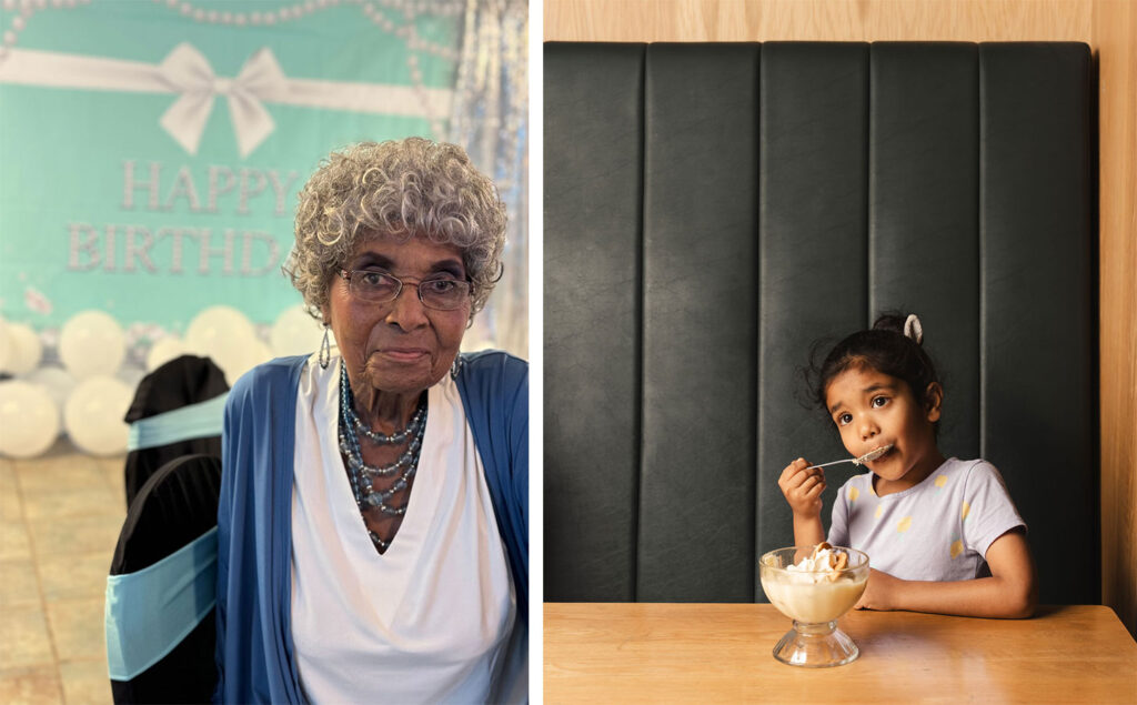Miss Pearl at her 99th birthday party in August 2024 (courtesy photo). At right: Ms. Pearl’s Banana Pudding is a favorite at Town Fare.
