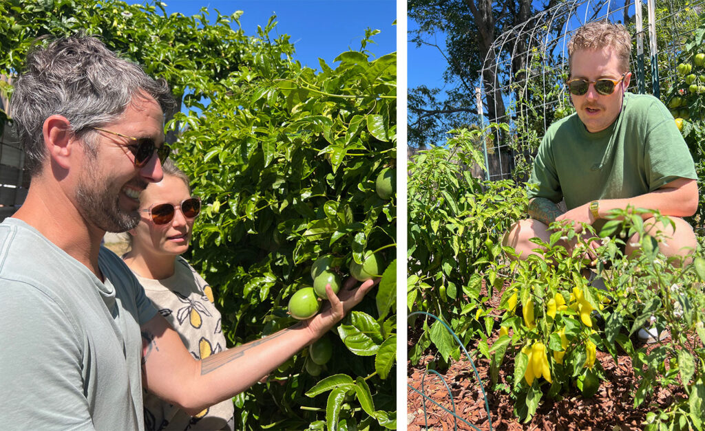 Left: Ben Obriecht and Jenna Davenport shared cuttings from their passion fruit vines with visitors who came to their garden. Right: These banana peppers were among the 15 chili pepper varieties gardener Jonny Prestidge grew in 2025.