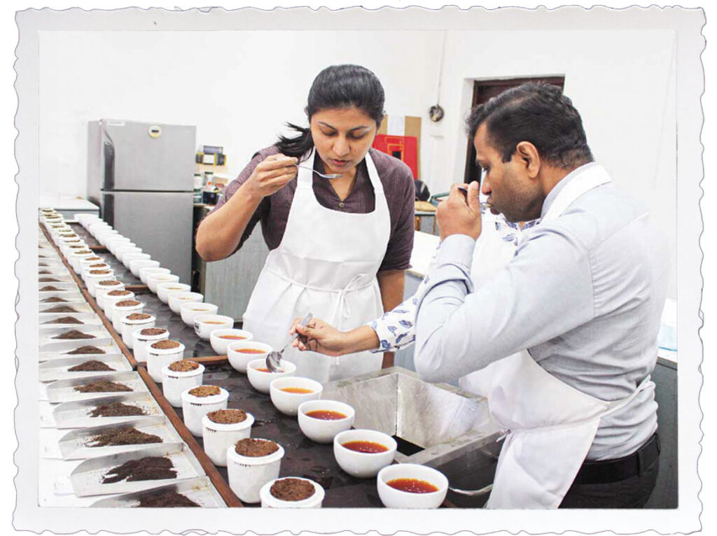 Professional tea tasters in Sri Lanka use all of their senses to evaluate tea samples, often tasting hundreds of teas a day. (courtesy: Sri Lanka Tea Board)