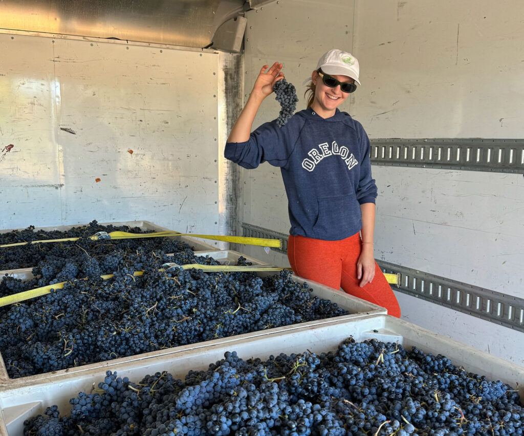 Lula winemaker Megan Sekermestrovich arrives at the Richmond Wine Collective with valdiguié grapes just harvested for her 2023 vintage State Flower wine. (courtesy: Lula)