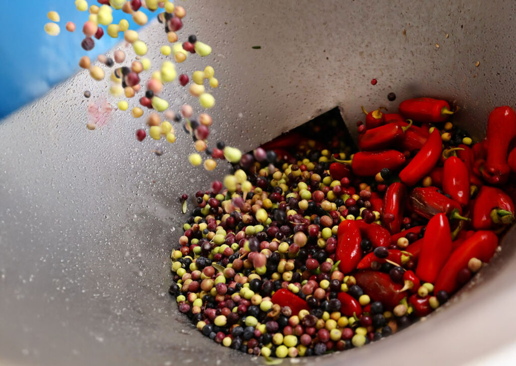 Like Family’s CiCi Chili oil pours from a chute at 43 Ranch. (Photo by Evan Loewy, Like Family)
