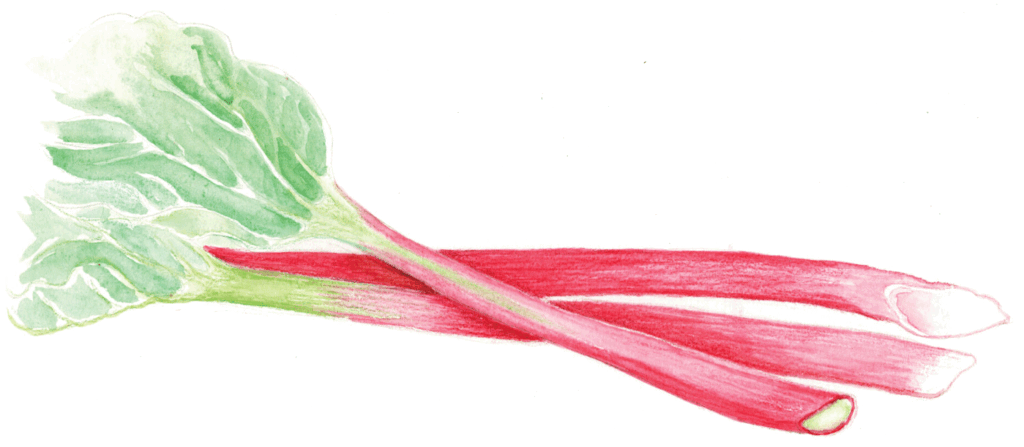 What is RHUBARB? It’s a question I’m often asked at the farmers’ markets. This vegetable looks like red and green–streaked celery, but because of its sour flavor, it is typically used as a fruit. It’s a member of the buckwheat family and is sometimes referred to as pie plant due to its popularity as a pie filling, especially when mixed with strawberry.
