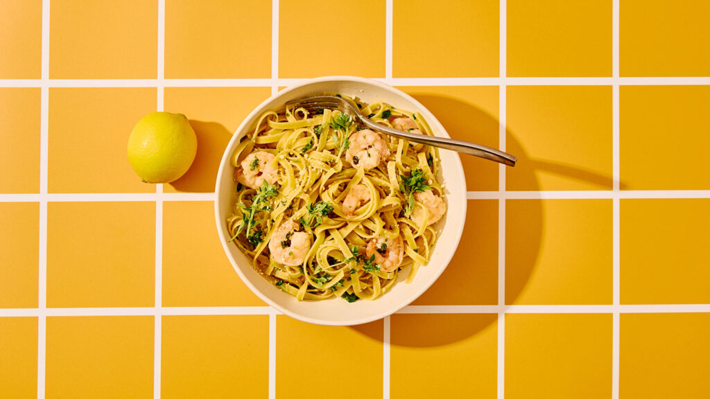 Lemony Fettuccine with Shrimp, Garlic, and Basil
